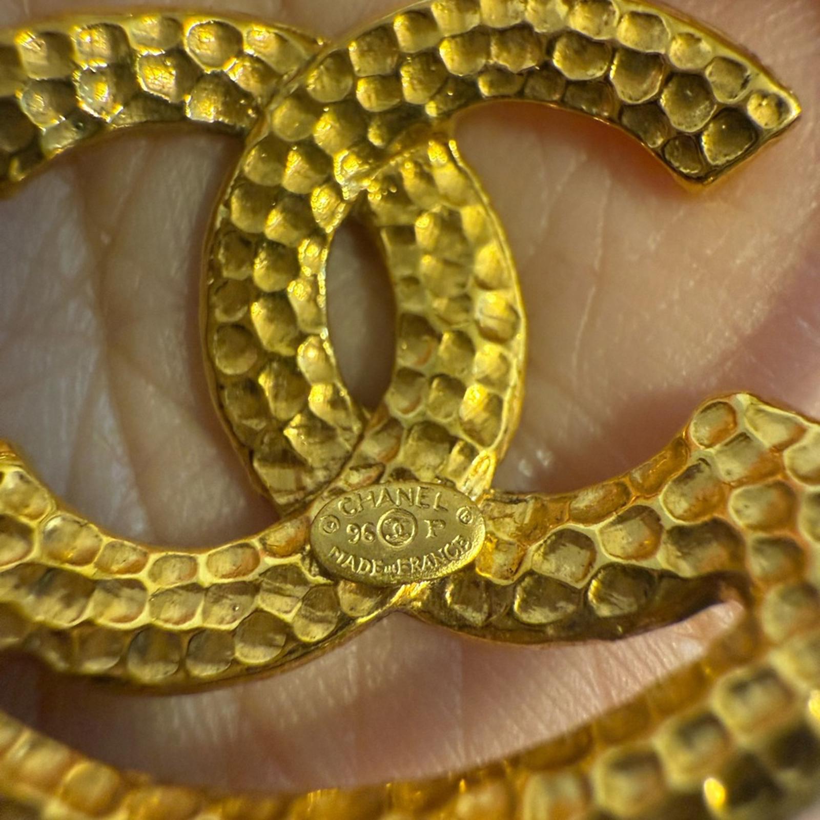 Gorgeous vintage pair of Chanel gold CC clip on drop earrings