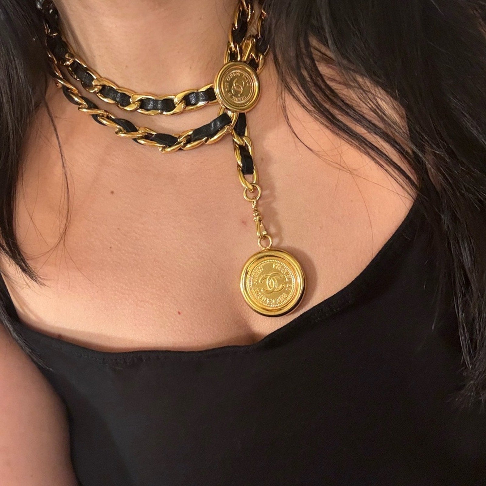 Vintage Chanel CC Coin Logo Leather Chain belt which can also be styled as a necklace