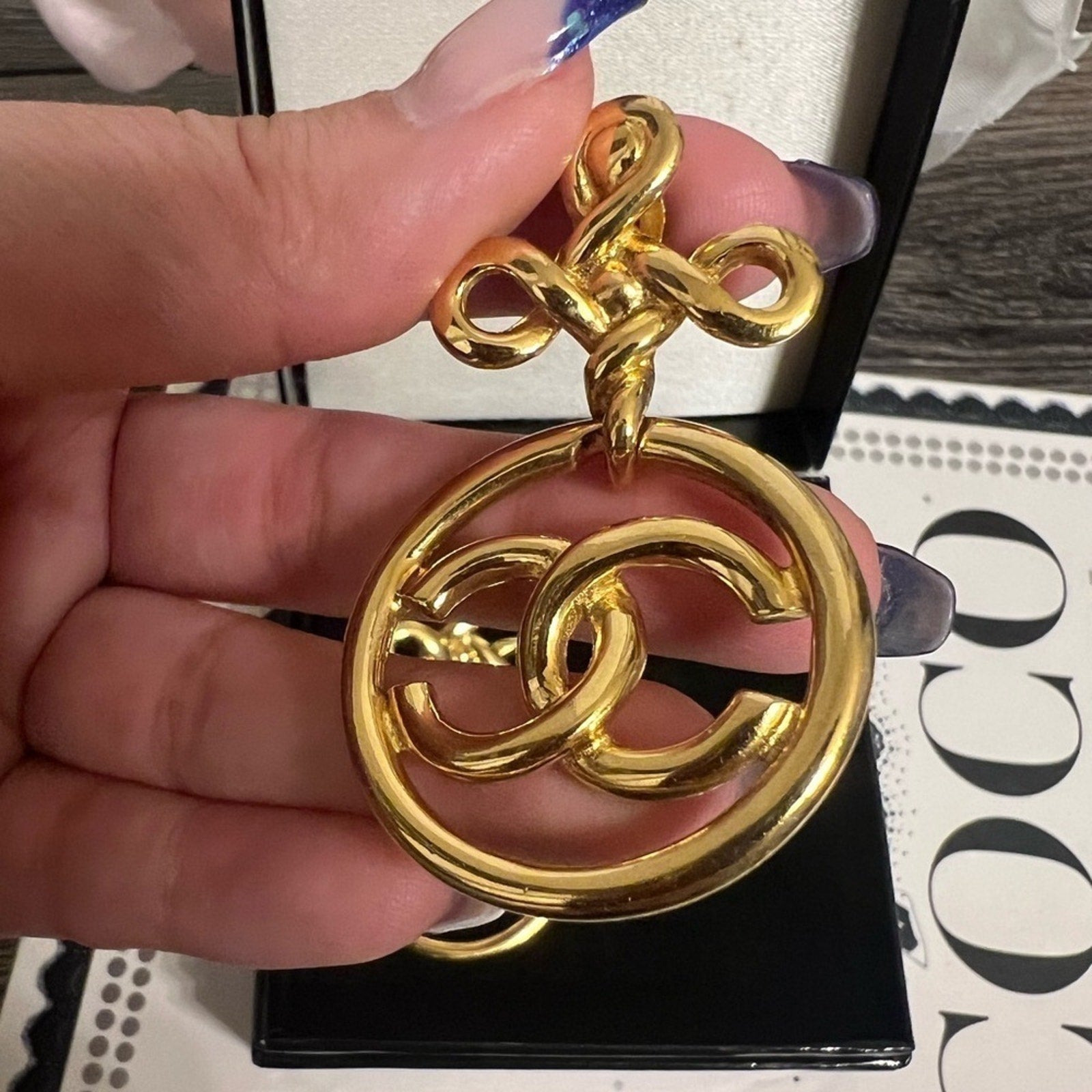 Gorgeous vintage pair of Chanel gold cc drop earrings